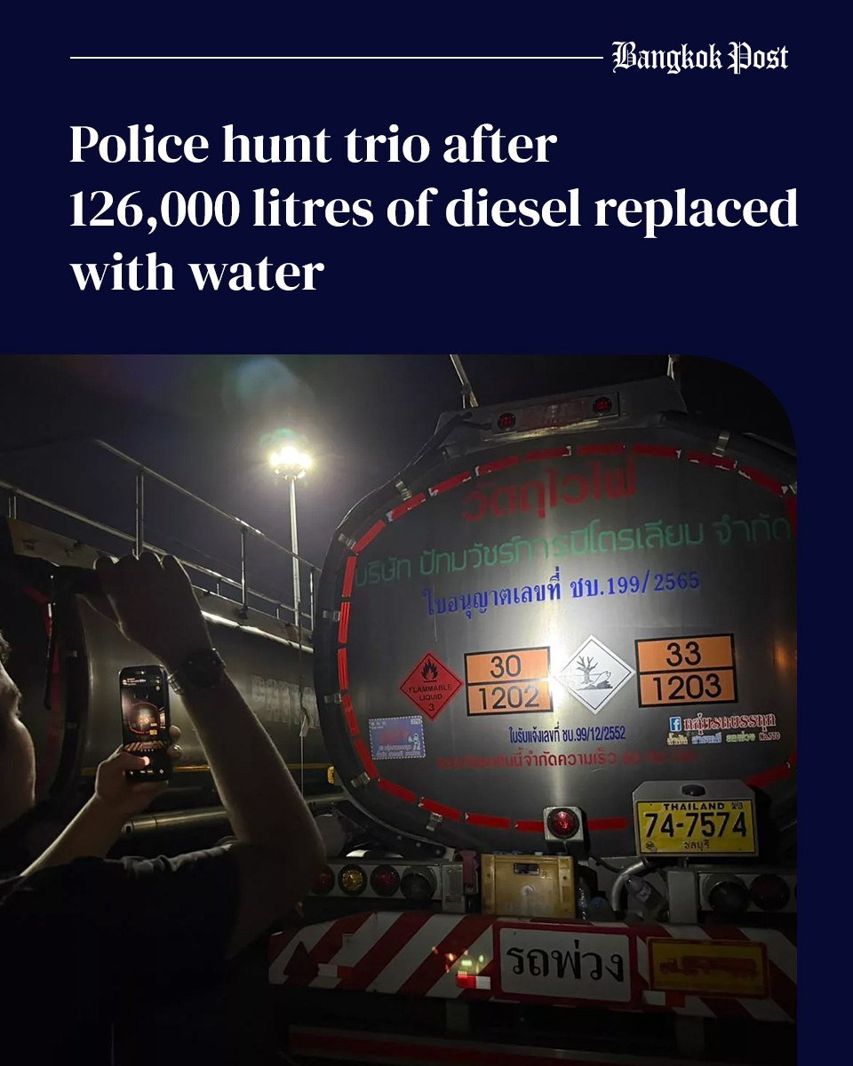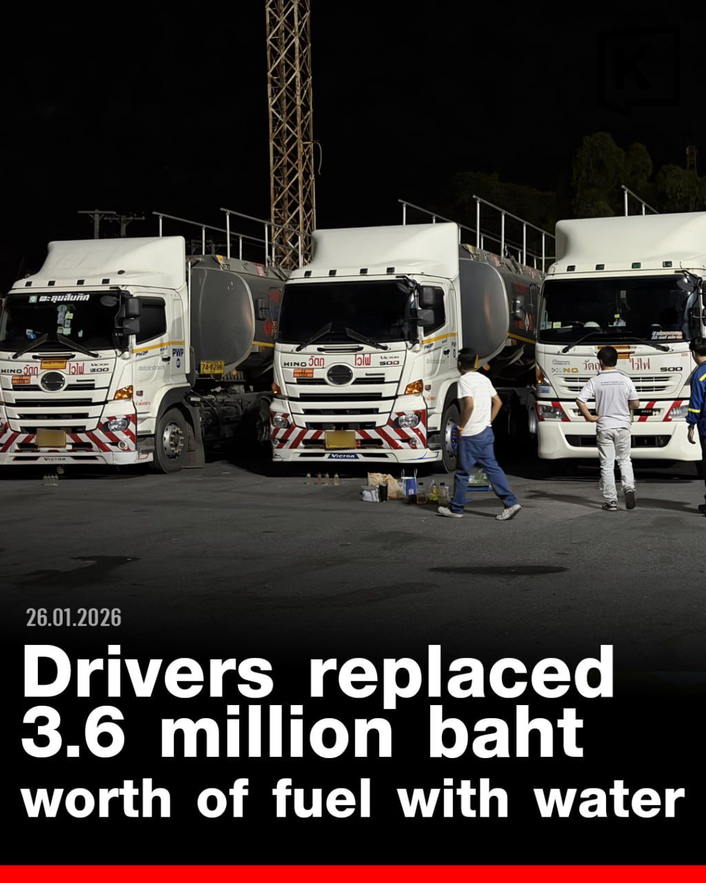 រាជធានីបាងកក៖ ប៉ូលិសខេត្តឈុនបុរី បានឃាត់ខ្លួនអ្នកបើករថយន្ដដឹកប្រេងចំនួន៣នាក់ ក្រោមការចោទប្រកាន់ពីបទលួចប្រេងម៉ាស៊ូត ដែលមានតម្លៃជាង៣,៦លានបាត (លុយថៃ) ឬស្មើនឹងប្រហែលជាង ១១៤ ៧០០ដុល្លាអាមេរិក។ នេះបើតាមសារព័ត៌មានជាភាសាអង់គ្លេសរបស់ថៃ Khaosod បានផ្សាយ កាលពីថ្ងៃចន្ទ ទី២៦ ខែមករា ឆ្នាំ២០២៦។